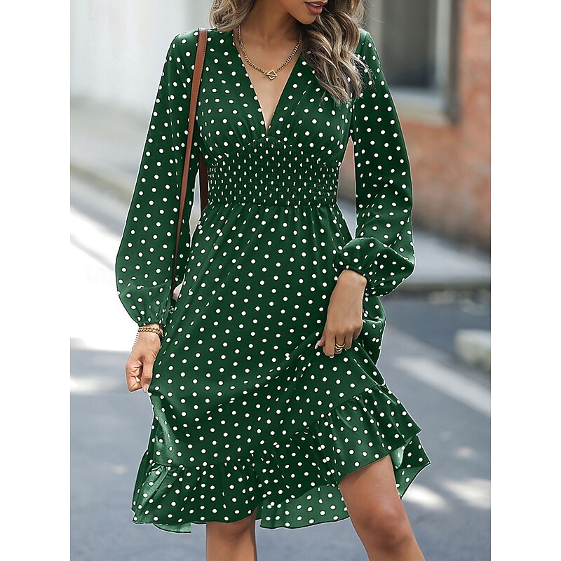 More information about Women's Polka Dot V Neck Midi Dress Long Sleeve Spring Fall