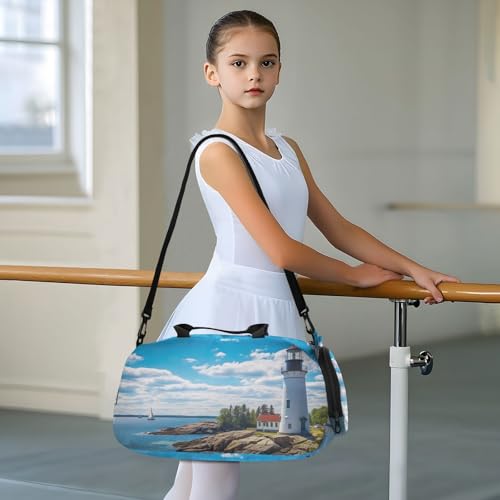 Lighthouse on Ocean Duffle Bag for Girl, Sports Duffle Gym Bags with Shoe Compartment, Personalized Overnight Bag Travel Weekender for Kids 7