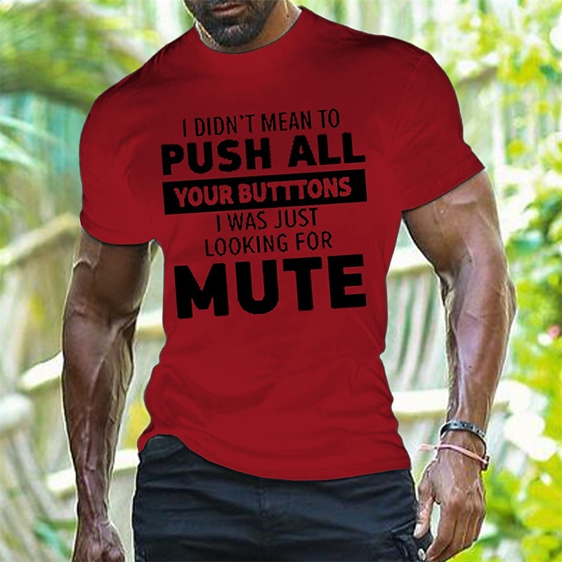 Mens Funny Sarcastic Graphic T-Shirt: I Didn't Mean To Push All Your Butttons I Was Just Looking For Mute Short Sleeve 2