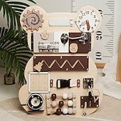 More information about Montessori Teaching Aids Wooden Double-Sided Bear Busy Board Montessori Drawing Board Mechanism Unlocking Educational Toys Go to School Holiday Gifts for Kids