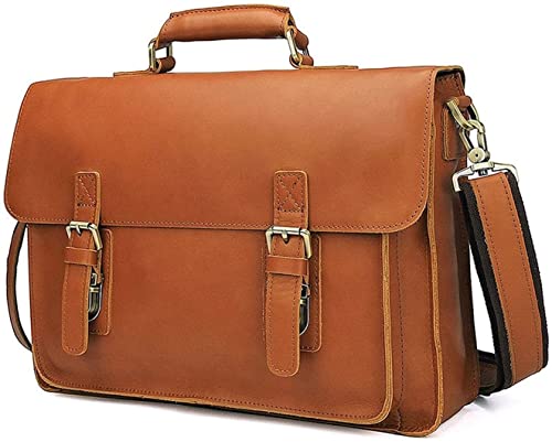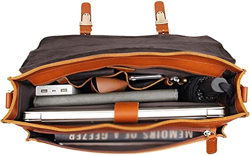 HOT ! Messenger Bag, Leather Briefcase for Men,14 Inch Large Pocket Leather Messenger Bag for Men, Brown Leather Laptop Bag Leather Satchel(Size:39.5x9x29CM)