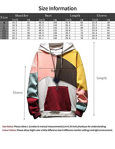 More information about Men's Swagger Color Block Cotton Pullover Hoodies 5XXL Hip Hop Brushed Hooded Sweatshirt Outwear