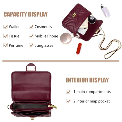 Small Quilted Shoulder Bags for Women Vegan Leather Crossbody Bag Trendy Ladies Clutch Bag Cross Body Purses with Chain Strap 6