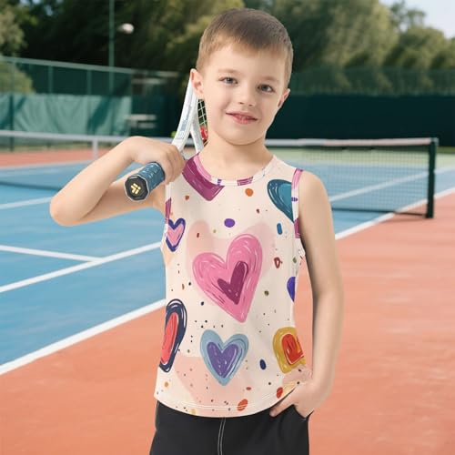 Bolaz Boys Athletic Quick Dry Tank Top Sleeveless Workout T Shirts Age 11-15,Hand-Drawn Hearts Pattern 3
