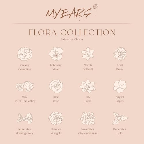 More information about MYEARS Birth Flower Bracelets for Women Gold Sideways Charm 12 Months 14K Simple Dainty Chain Floral Jewelry Gift