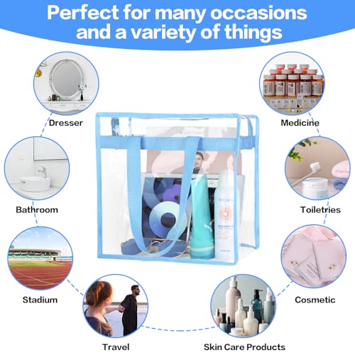• HIGH QUALITY MATERIAL - Made of thick PVC, clear material and daily waterproof. This clear tote bag uses reinforced fabric seams to make sure your items stay perfectly, can be used for a long time.
