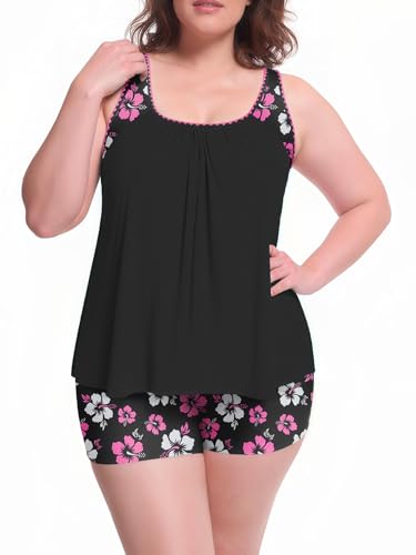 • PLUS SIZE TANKINI WITH TUMMY CONTROL: This two-piece bathing suit is designed to flatter your curves. The stylish tankini top and boyshort bottom combo offers a modest yet fashionable look, providing the perfect blend of coverage and confidence for your next getaway.