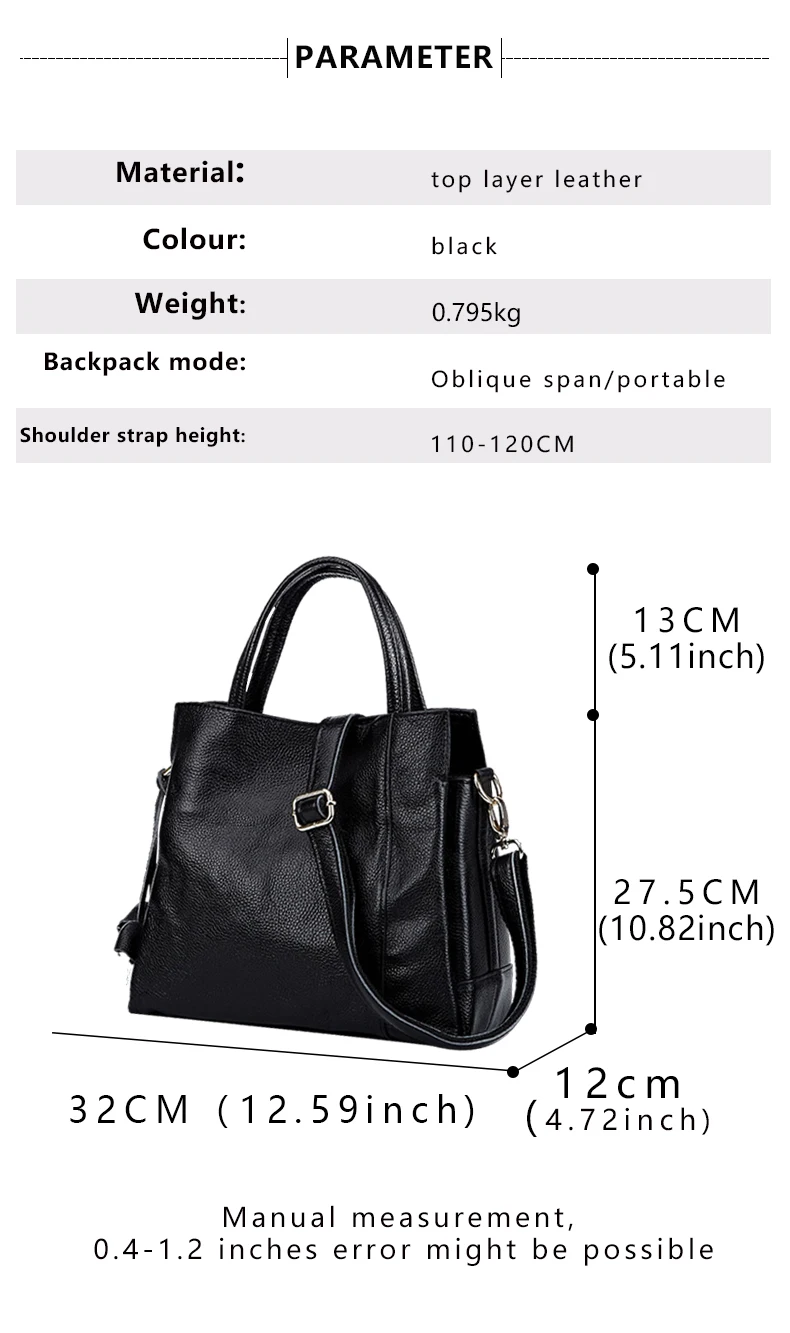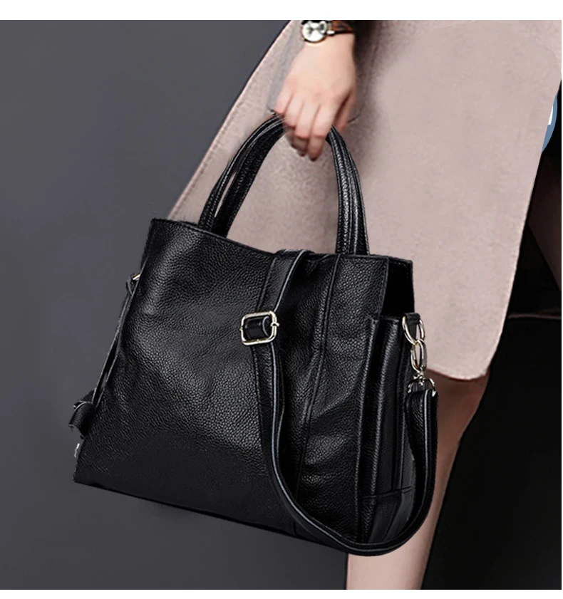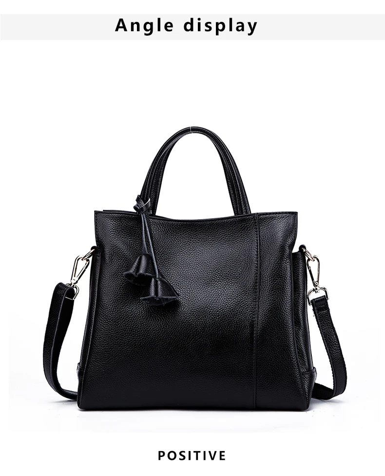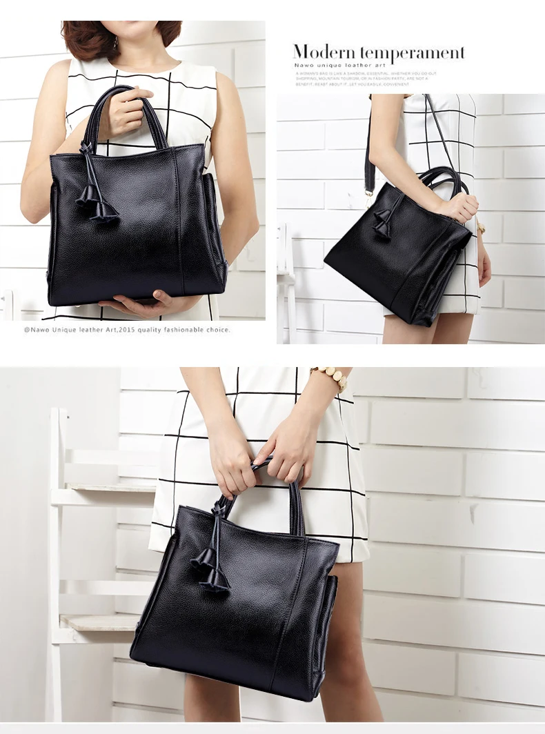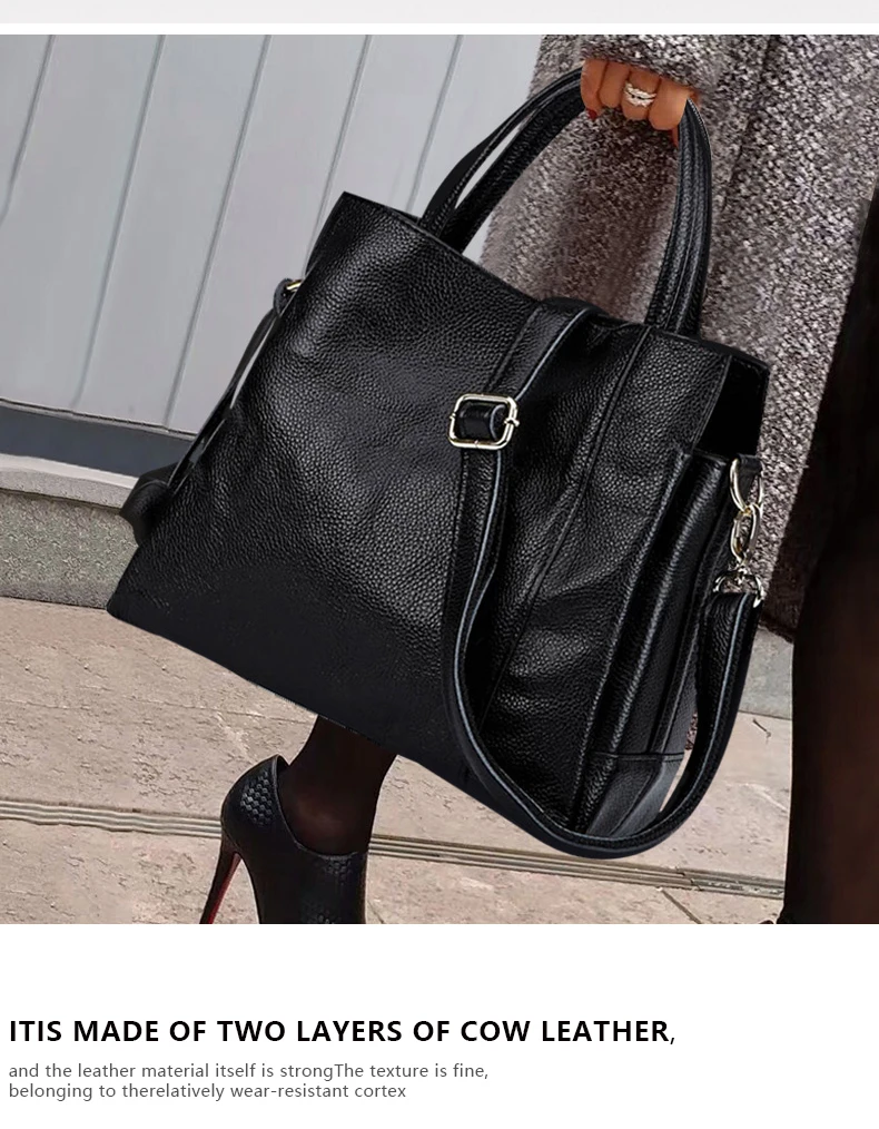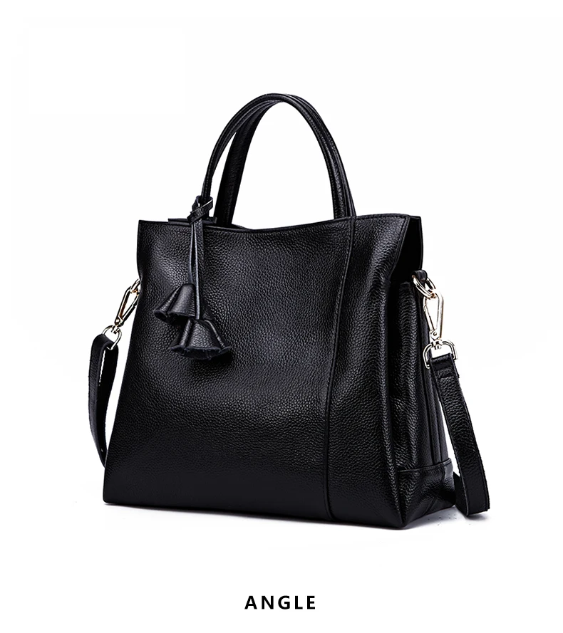Cowhide women's handbag casual versatile black daily commuting single shoulder cross-body tote bag