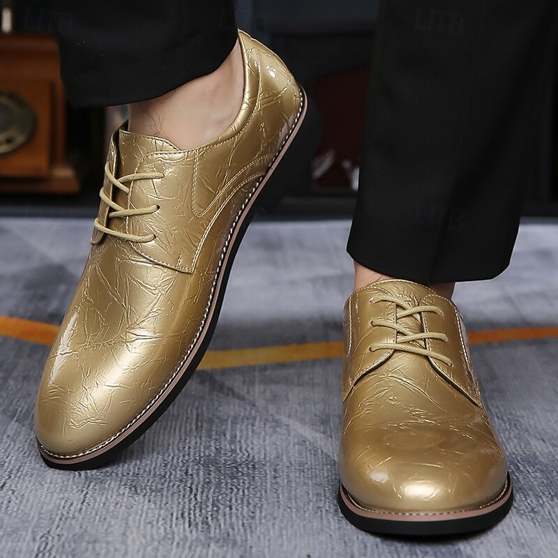 HOT ! Men's Shiny Teal Patent Lace-Up Dress Shoes – Stylish Formal Footwear for Weddings and Business Events