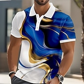 HOT ! Men's Abstract Marble Polo Short Sleeve Polo Shirts Collared Shirts Casual Outdoor Athleisure Daily Wear 3D Print Buttons Summer White Blue Light Blue