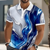 More information about Men's Abstract Marble Polo Short Sleeve Polo Shirts Collared Shirts Casual Outdoor Athleisure Daily Wear 3D Print Buttons Summer White Blue Light Blue