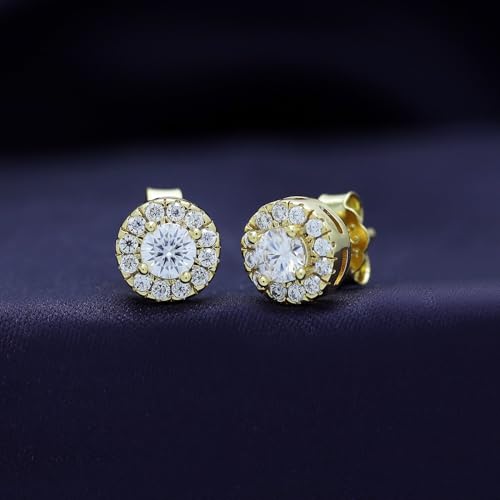 18k Gold Plated Sterling Silver Post Halo Stud Earrings | Heart, Round & Teardrop style Moissanite Diamond Stud Earrings for Women | Push Back Earrings For Her 1