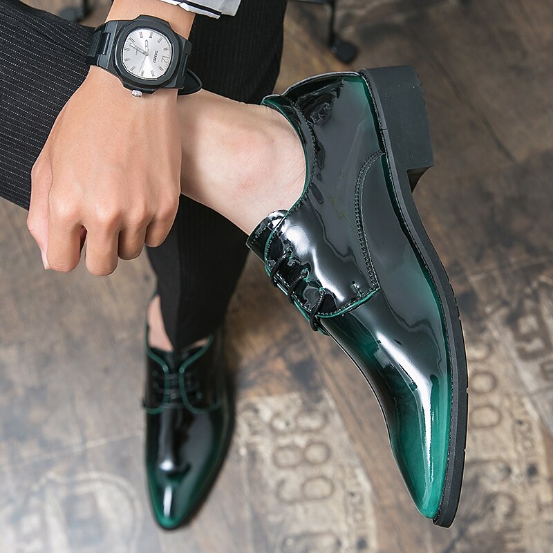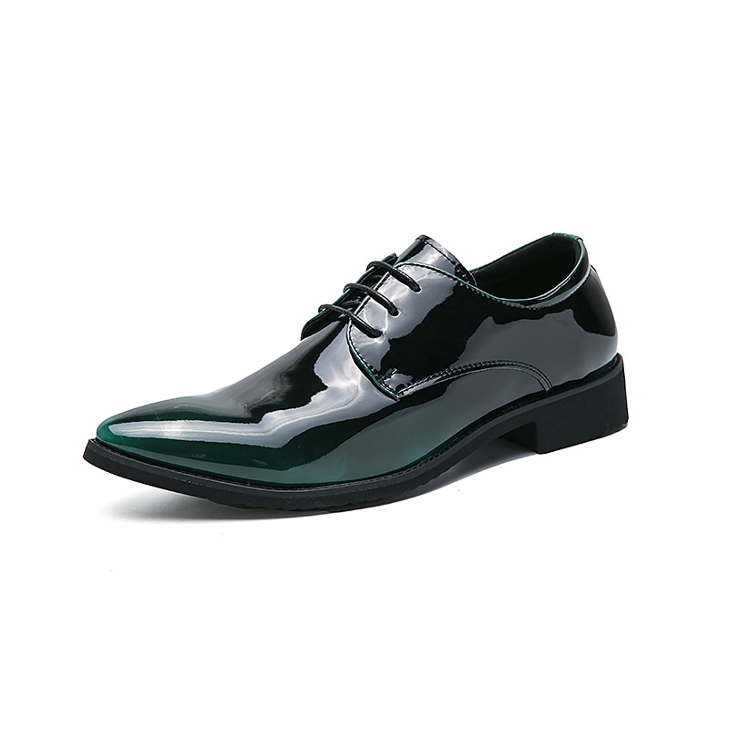 Men's Green Gradient Patent Leather Oxford Dress Shoes, Shiny Lace - Up Formal Shoes for Weddings Business Events 24