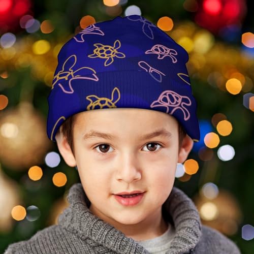 Sea Turtle Kids Beanie Hat for for Girls Boys Children Cap Winter Knitted Chemo Cancer Headwear Accessories Gifts Decoration Black 7