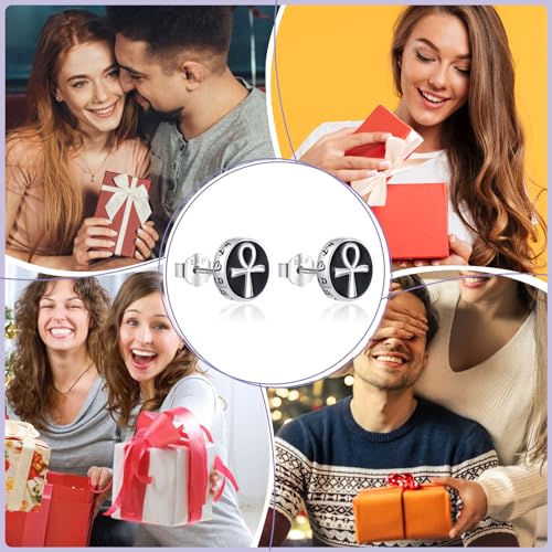 Stud Earrings 925 Sterling Silver Ankh/Yin/Eye of Horus Yang Earrings Religious Jewelry Gifts for Men Women 4