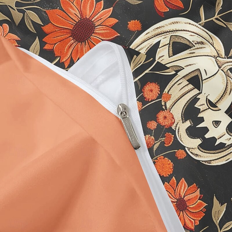 Halloween Duvet Cover Set Jack O Lantern Pumpkin Floral and Pumpkin Patterns for a Cozy Holiday Feel - Includes Duvet Cover and Pillowcases - Soft and Comfortable Fabric 7