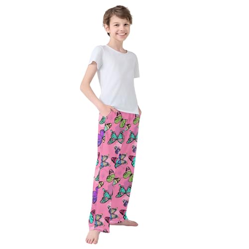 Hand Drawn Butterflies Pink Boys Pants for Kids Jogger Pants with Pockets S-XL 6