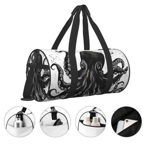 Classic Black Octopus Duffle Bag for Women Men Personal Item Travel Bags Canvas Weekender Overnight Bag Lightweight Sports Tote Gym Bags Carry On Luggage Bag 5