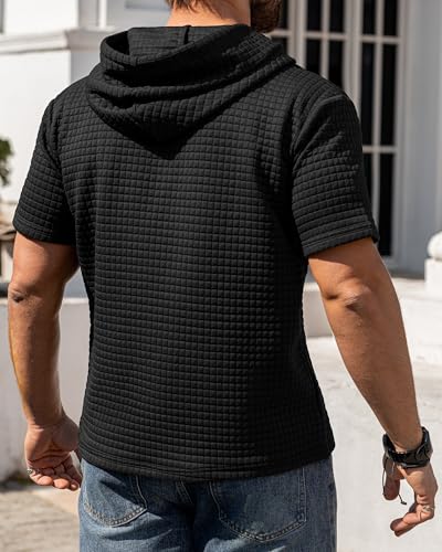 Aiyino Men's Hoodies Pullover Casual Short Sleeve Drawstring Waffle Knit Hooded Sweatshirt with Kanga Pocket 1