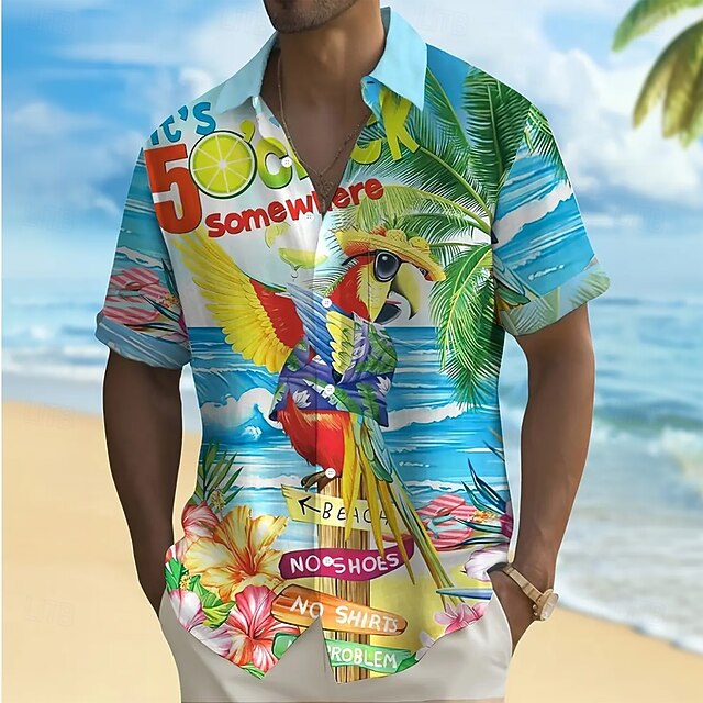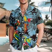 HOT ! Men's Coconut Tree Funny Parrot Shirt Summer Hawaiian Shirt Button Up Shirt Short Sleeve Hawaiian Vacation Holiday Beach Wear Summer Spring Turndown 3D Print Collared Shirts Front One Pocket Black