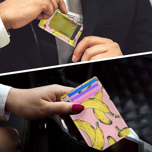 HOT ! Slim Minimalist Wallet Yellow Banana on Pink Background Front Pocket Wallet PU Leather Rfid Blocking Wallets for Men and Women