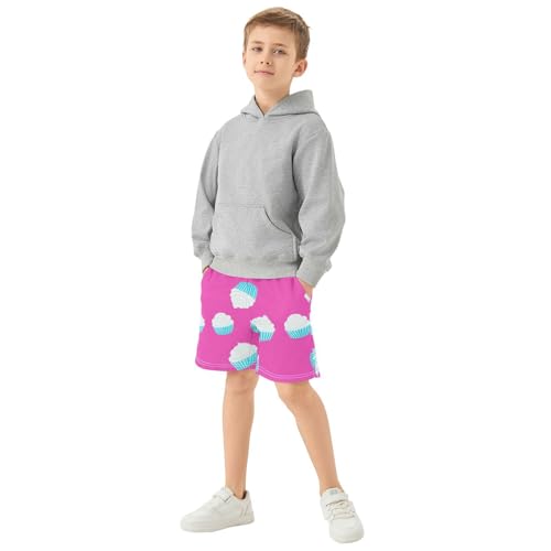 J JOYSAY Cupcake Blue Stripe Magenta Boys Athletic Shorts Kids Youth Casual Shotrs with Pockets Elastic Waistband 4
