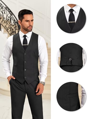 • 【Mens Suit 3 Piece】Jacket: Classic shawl lapel design, 2 buttons, 1 chest pocket, 2 functional flap pockets, side vents. Vest: V-neck, adjustable strap. Pants: Zipper closed, 2 angled pockets