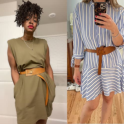 • 【Eye Catching Tie a knot Design Perfect for any Outfit】 This Charming Tie Knot Leather Belt for women is nice to pair with Dresses, Jumpsuit, Cardigan, Overcoat, Sweater. Whatever you wear, it will look super cute, elegant and chic. A must have accessory for your wardrobe. All-year around belt.
