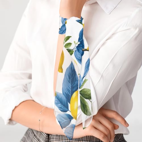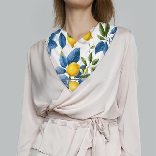 HOT ! Summer Lemon Blue Leaves Square Silk Scarf for Women, 23.6" Lightweight Fashion Scarves Wraps, Silk Like Hair Neck Scarf Headband Bandanas for Ladies