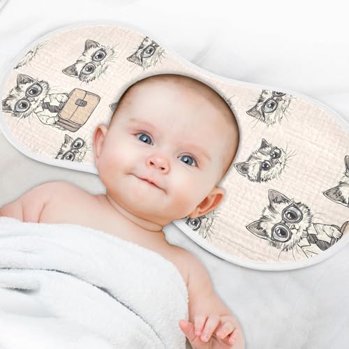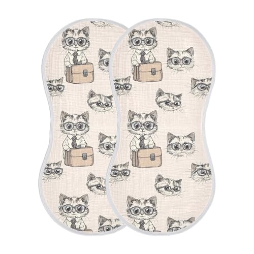 vvfelixl Cartoon Kitten with Glasses Burp Cloths for Baby Boy Girls Baby Washcloths Burp Rags 1 Pack