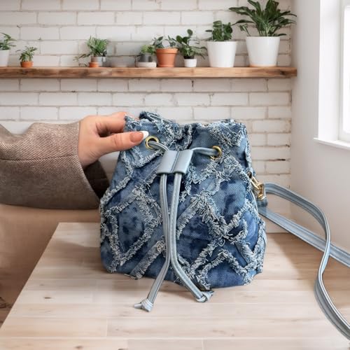 HOT ! Denim Bags for Women 2025, Blue Jean Bucket Purses, Denim Handbag