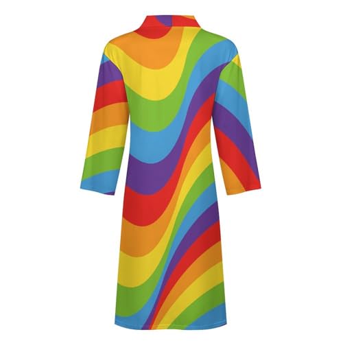 Magic Rainbow Opt Art Mens Robe Long-sleeve Spa Bathrobe Lightweight Nightgown Sleepwear for Shower Bath 2