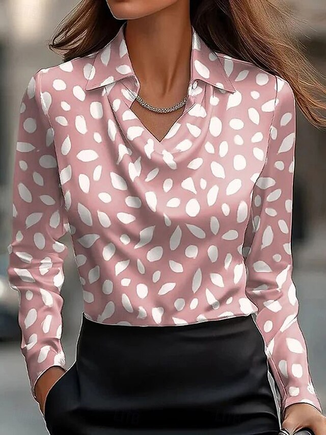 More information about Women's Shirt Dressy Tops Formal Work Shirt Floral Graphic Abstract Elegant Stylish Casual Long Sleeve Cowl Neck Party Evening Wear Daily Ruched Draped Pink Red Navy Blue Beige Fall