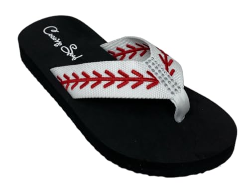 Cocomo Soul Rhinestone Baseball Flip Flops | Embroidered Slippers | Sandals for Women | Bling 4