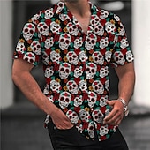 Highlights - Perfect for spring and summer seasons. - Features a trendy short sleeve design. - Specifically designed for men. - Embodies a stylish Hawaiian style. - Eye-catching skull pattern adds an edgy touch. - Neckline is designed with a turndown collar for added flair.