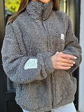 Highlights [Fabric]: Crafted from high-quality polyester, this women's fleece jacket features a cozy and plush faux shearling material that provides warmth and comfort. The micro-elasticity ensures a comfortable fit, making it perfect for fall and winter days. [Fit]: The jacket offers a regular fit, making it easy to layer over other clothing. Its relaxed style allows for flexibility and comfort, ideal for daily activities and casual outings. [Design Highlights]: This jacket features a convenient full-length zipper closure and a stand collar for added warmth and protection against colder weather. It includes spacious side pockets, perfect for keeping your hands warm or storing small essentials. The fleece lining enhances the jacket's warmth and comfort. [Occasions]: Perfect for daily wear, vacations, and casual outings, this stylish jacket pairs effortlessly with jeans or leggings. It's a versatile addition to any fall and winter wardrobe, suitable for streetwear or going out. [Sizes]: Available in a range of sizes from S to 2XL, ensuring a suitable fit for various body types. The jacket comes in multiple colors, including white, pink, and gray, catering to different style preferences.