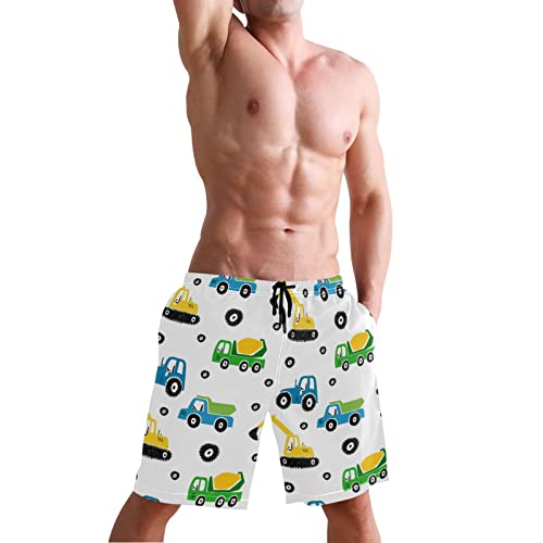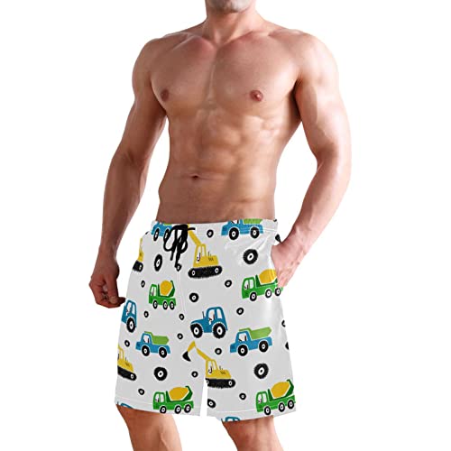 Tractor Excavator Dump Truck Men's Boy's Novelty Beach Shorts Swim Trunks Summer Quick Dry Bathing Suits S 3