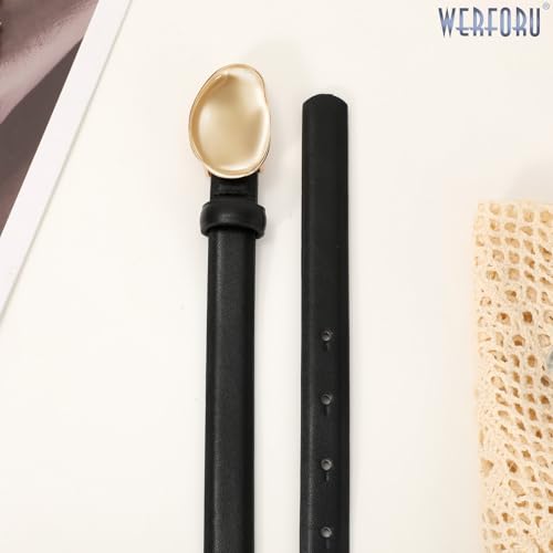 More information about WERFORU Women Skinny Belts for Dress Jeans Ladies Thin Faux Leather Belt with Unique Gold Buckle,0.7" width