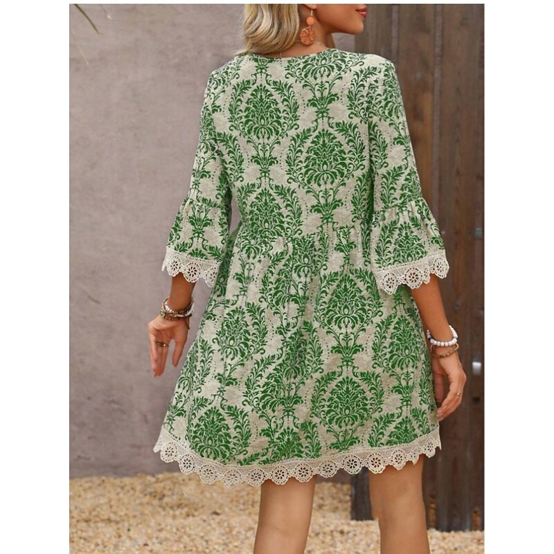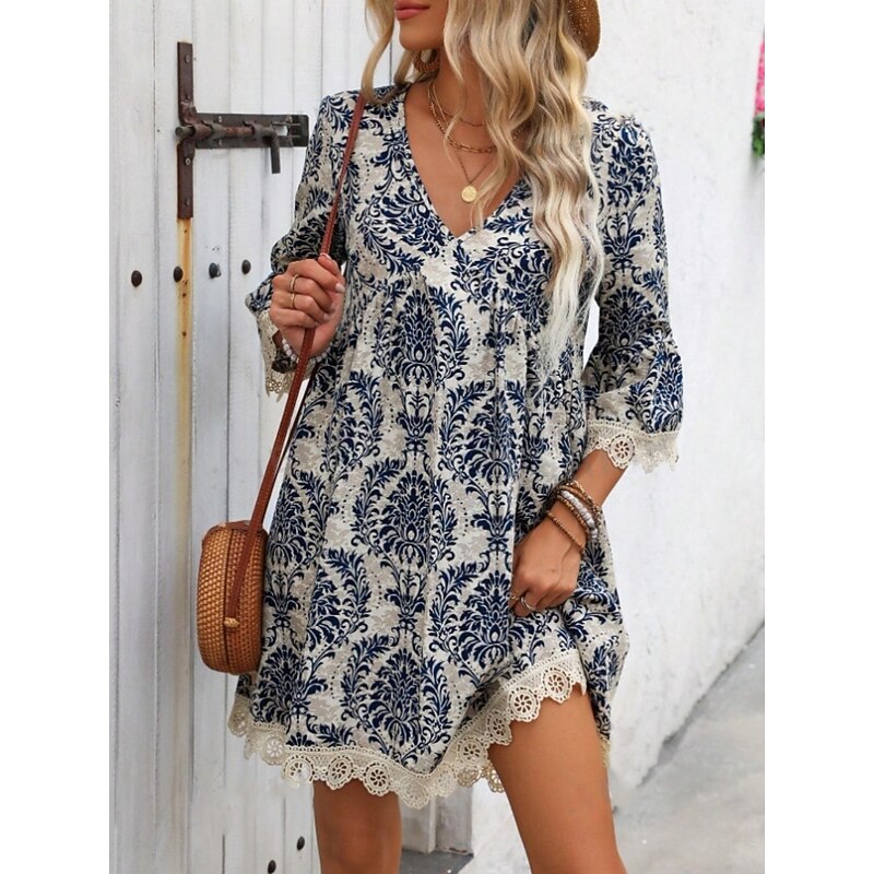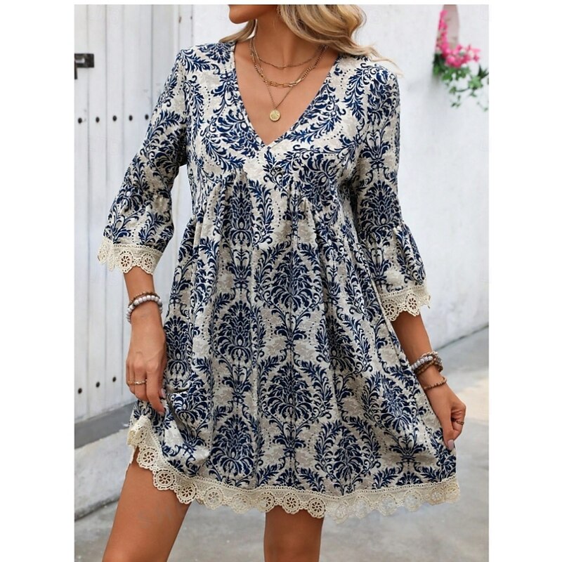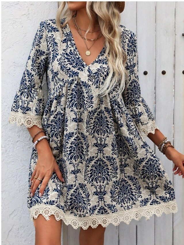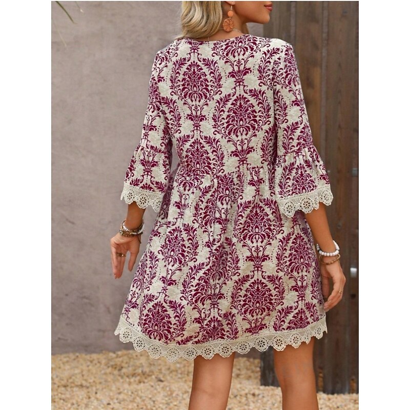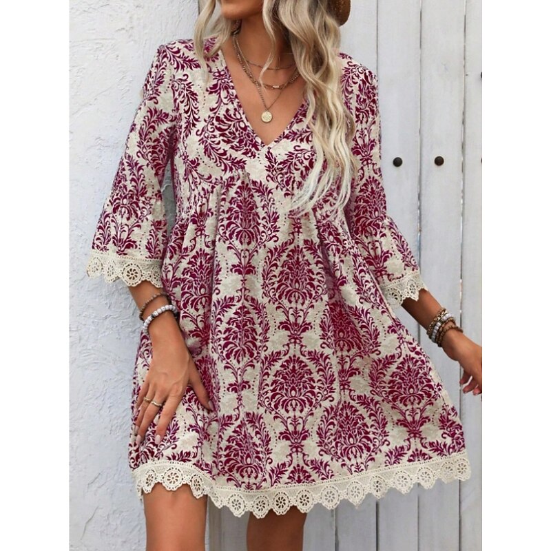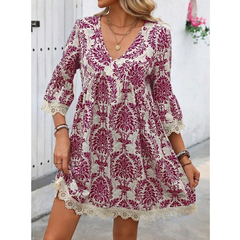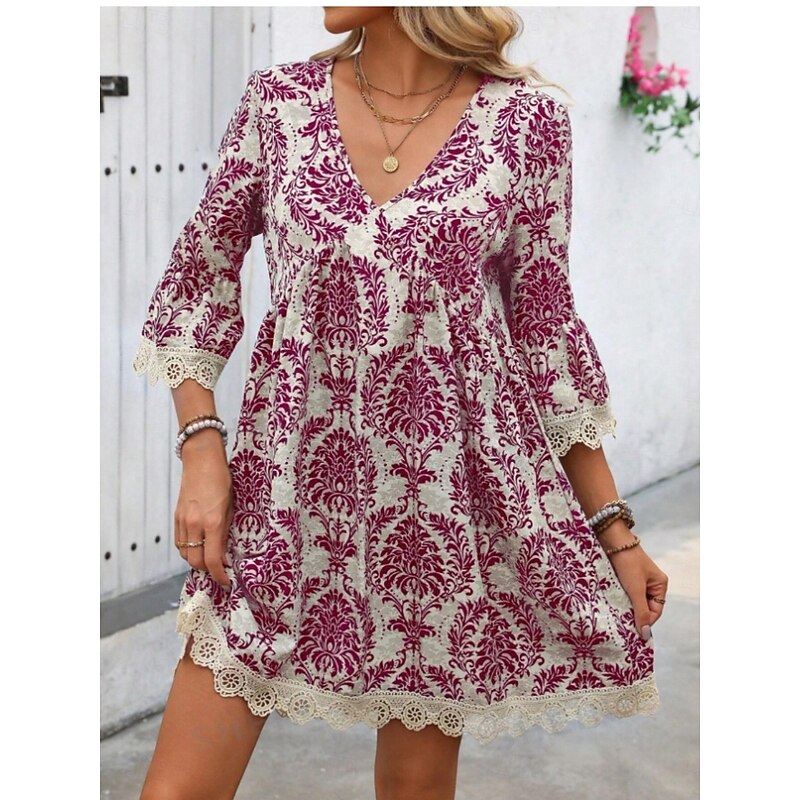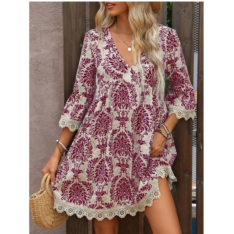 More information about Women's Mini Dress Petite Dress Casual Dress Boho Dress Casual Daily Regular Fit Floral 3/4 Length Sleeve V Neck Wine Blue Green Summer Spring Fall