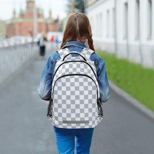 Light Blue White Checkerboard Backpack for Boys Girls Kids Elementary Bookbag School Bag Students Daypack Travel Rucksack 5