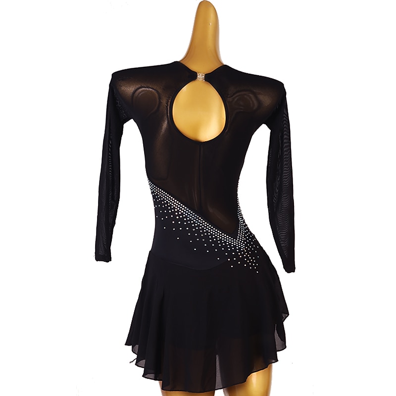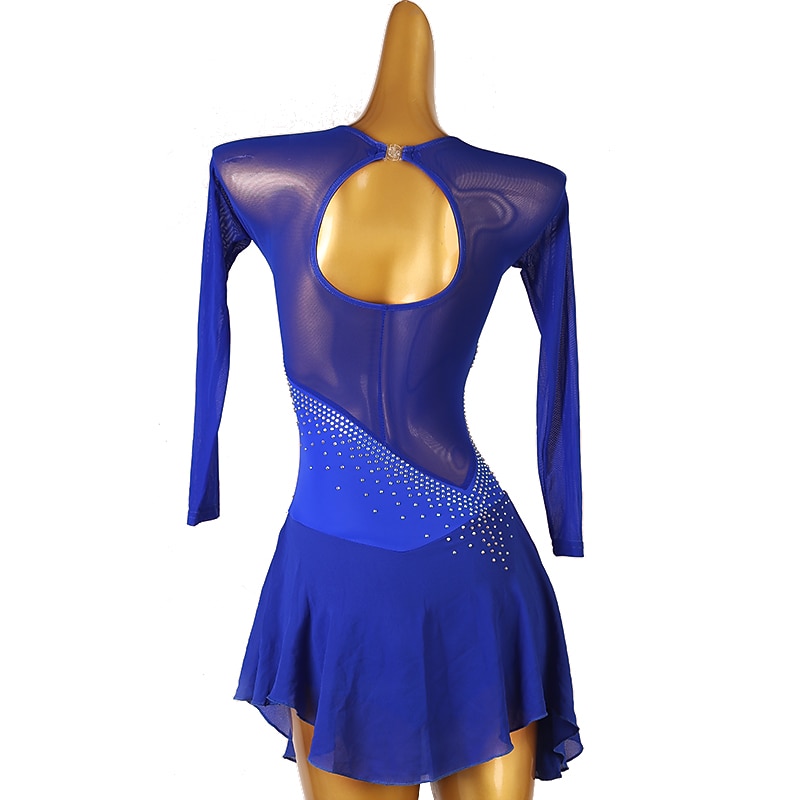 More information about Figure Skating Dress Women's Girls' Ice Skating Dress Black Royal Blue Patchwork Open Back Mesh High Elasticity Training Competition Skating Wear Classic Long Sleeve Ice Skating Figure Skating