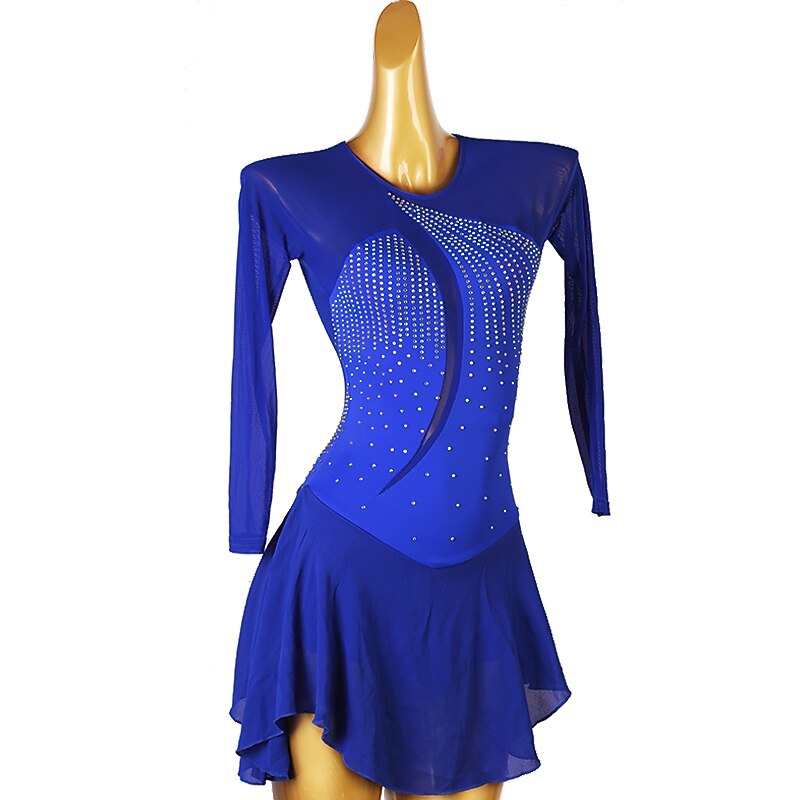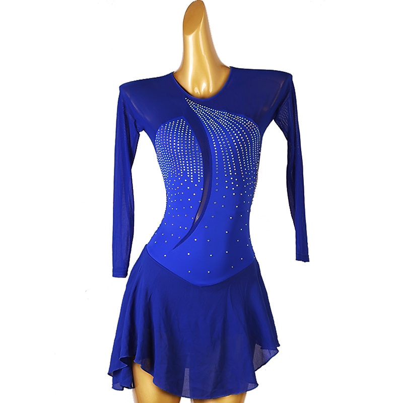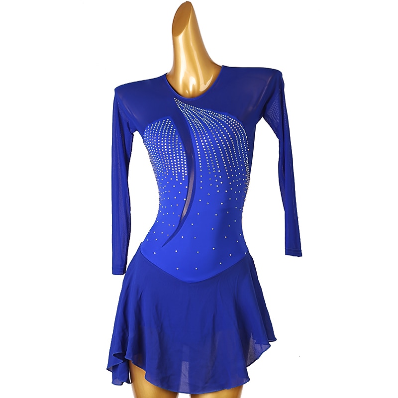 Figure Skating Dress Women's Girls' Ice Skating Dress Black Royal Blue Patchwork Open Back Mesh High Elasticity Training Competition Skating Wear Classic Long Sleeve Ice Skating Figure Skating 10