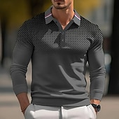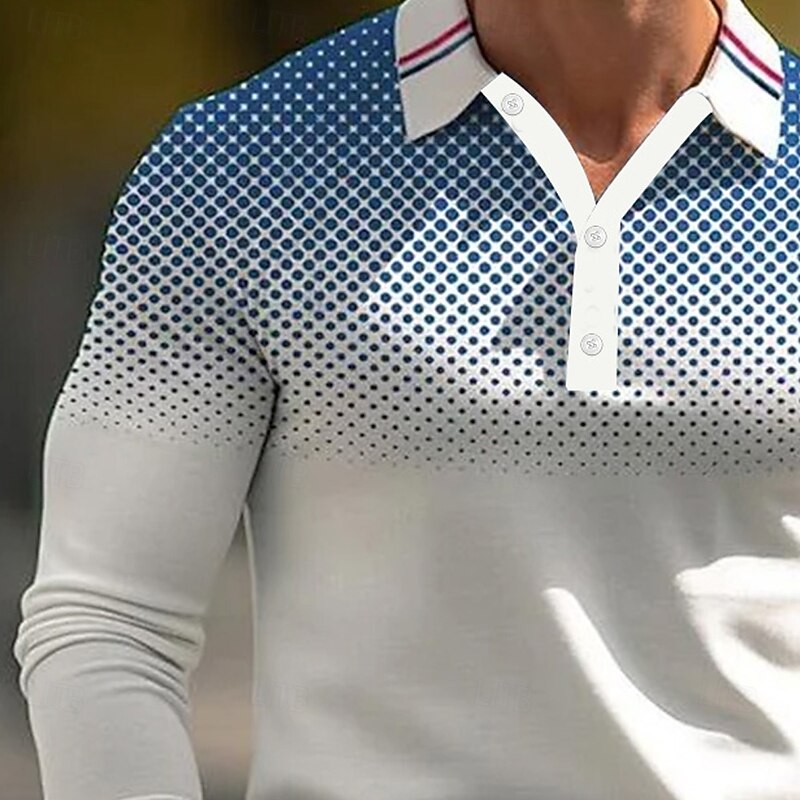 More information about Men's Dot Geometic Polo Long Sleeve Polo Shirts Collared Shirts Casual Outdoor Athleisure 3D Print Buttons Spring Fall Winter Black White Red