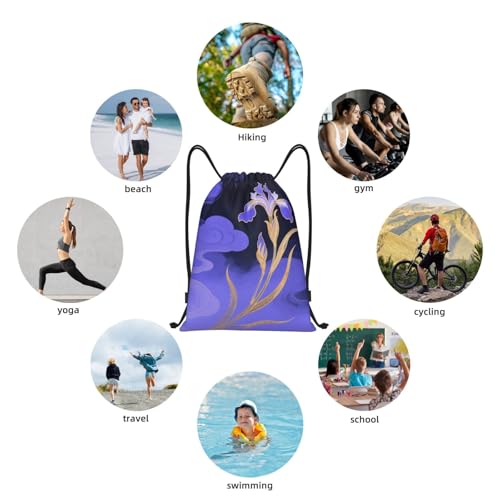 Floral Gold Dark Purple Drawstring Bags Gym Sport Sack Dance Yoga Bag 5
