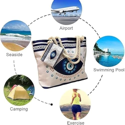 Beach Bags for Women - Large Evil Eye Beach Tote Bag, Women Sandproof Pool Bag for Pool Gym Grocery Travel 7