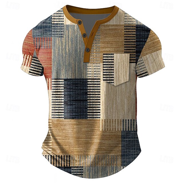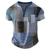 More information about Men's Patchwork T Shirt Henley Shirt Short Sleeve T shirt 3D Print Henley Shirt Designer Retro Vintage Street Casual Daily Pink Blue Green Summer Spring All Seasons Clothing Apparel S M L XL 2XL 3XL