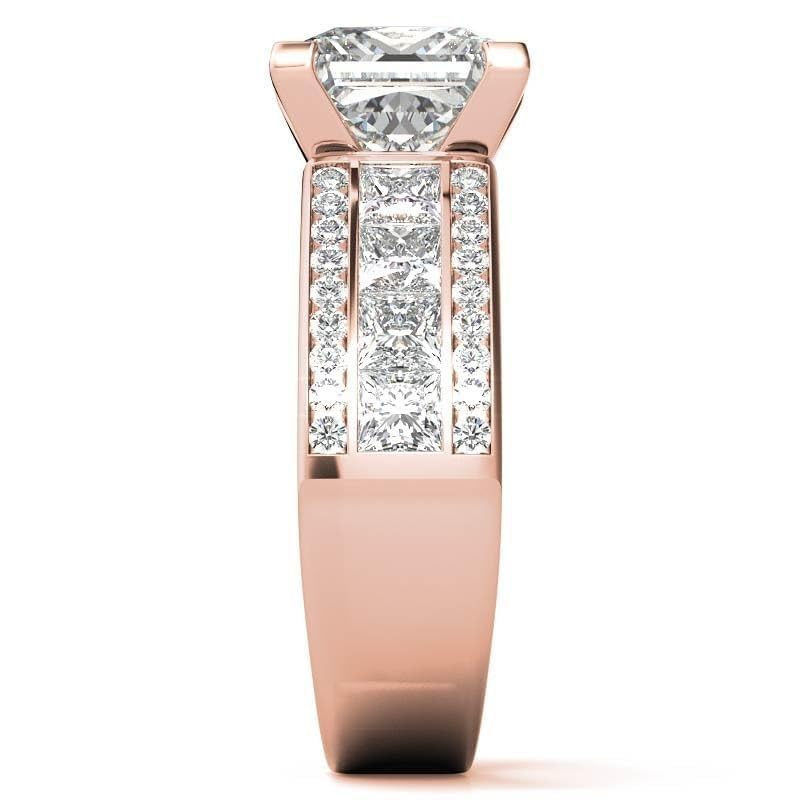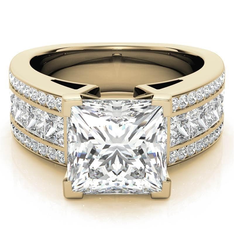 • Ring Setting :-4-Prong-Setting, Total Stone Material :- Moissanite , Main Stone Weight :4 CT, Center Stone Shape : Princess Shape, Center Stone Clarity :- VVS1, Centre Stone Color :- Colorless, Side Stone Material :- Moissanite
