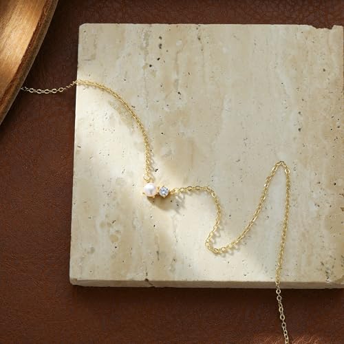 Pearl Necklaces for Women 14K Real Gold/Silver Plated Pearl Pendant Necklace Dainty Trendy Small Bead Choker Summer Fashion Wedding Jewelry Gift 5