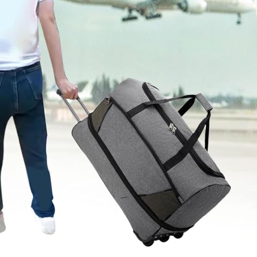HOT ! Wheeled Duffel Bag Travel Trolley Bag Foldable Tote Carrying Bag Portable Overnight Bag Luggage Bag for Women Picnic Men Trip, Gray, L