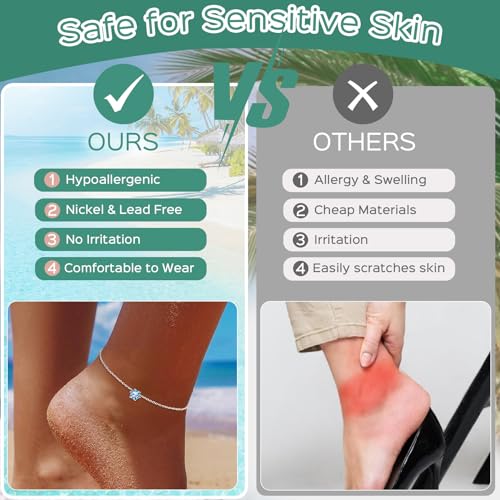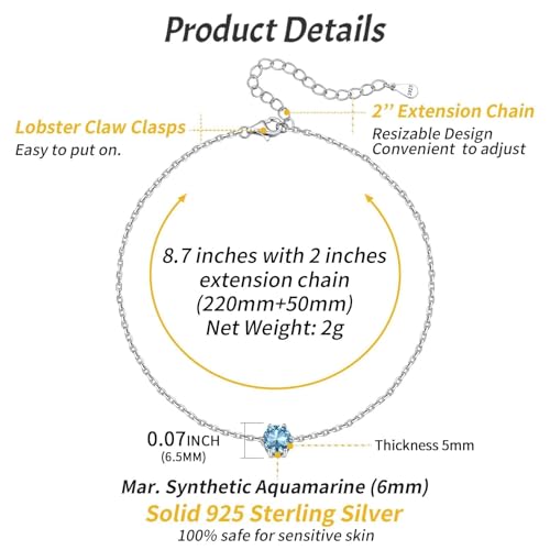 • HYPOALLERGENIC MATERIAL- The anklet silver is made of high quality 925 sterling silver and sparkling simulated Aquamarine, lead free & nickel free & anti-allergy, safe for sensitive skins.